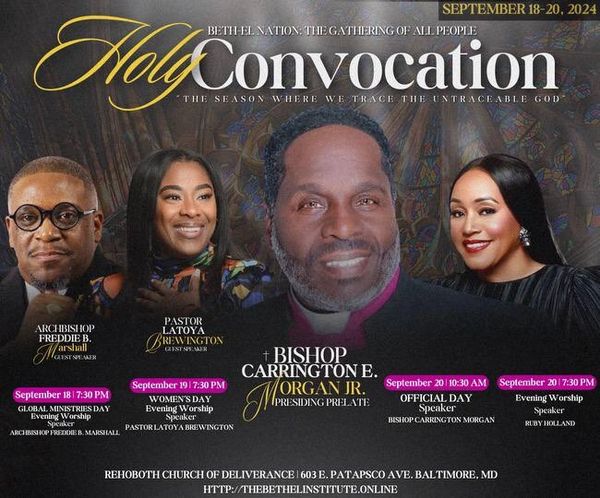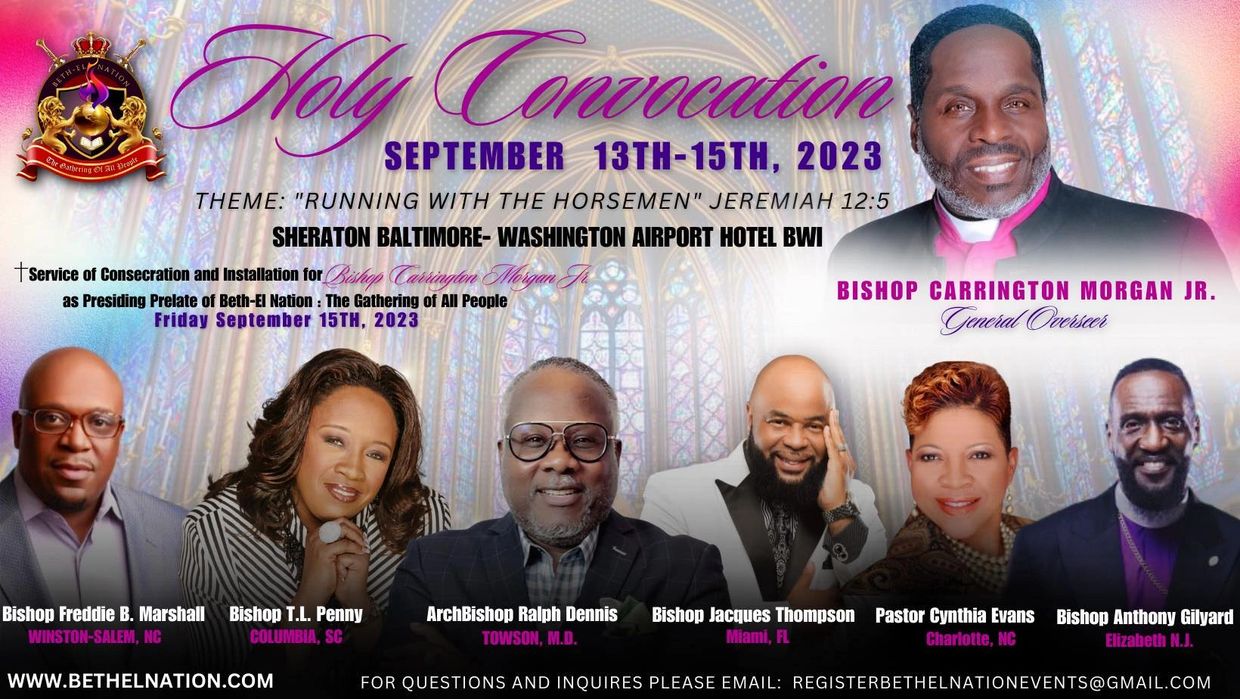 This year during our convocation our presider will be presiding over the 1st Consecration service for the Beth-El Nation. During this years' consecration there will be 4 Bishops and 1 Apostle who will be affirmed to the office. We invite you to join us at this momentous occasion.