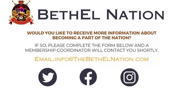 The Beth-El Nation is a non-profit organization that relies on the generosity of its partners to fund the various programs that we host throughout the year. Your generous financial support is greatly appreciated. We pray that as you sow the biblical law of seed time and harvest will manifest in your life!